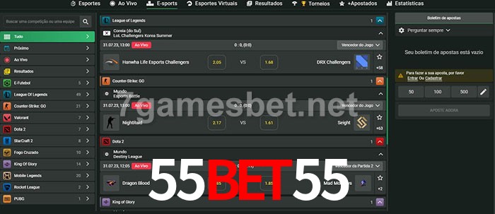 O 55bet55 oferece uma grande seleção de opções de apostas em e-sports com probabilidades competitivas